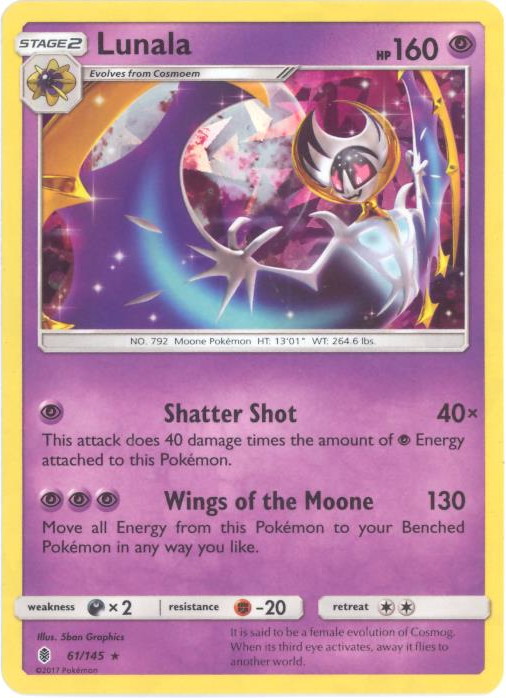 Amazon Com Pokemon Lunala 61 145 Rare Sun Moon Guardians Rising Toys Games